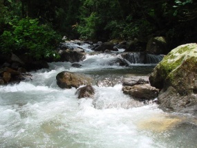 養殖場の横を流れる川は、 九頭竜川の支流にあたる...