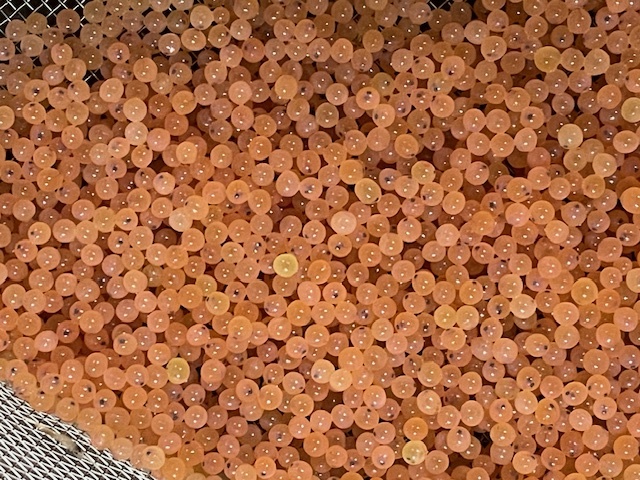 丁度、1か月前に採卵したあまごの卵に