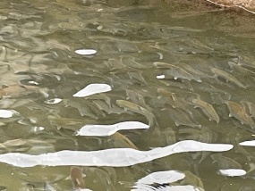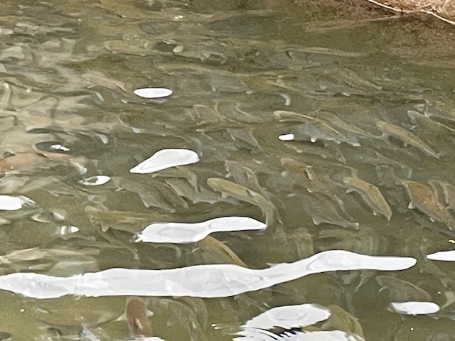 元気よく池で泳いでいたサーモンの幼魚の写真を撮りました。