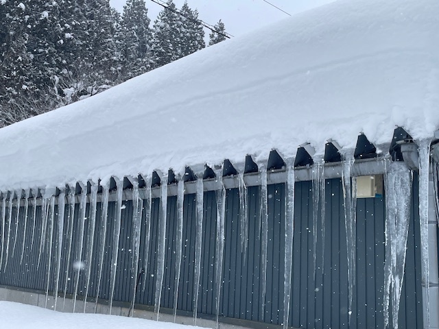 孵化場の屋根にできた「つらら」が、
