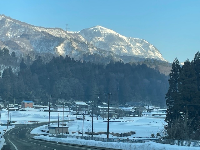 雪をたたえた甲山と、真っ青な青空がきれいだったので