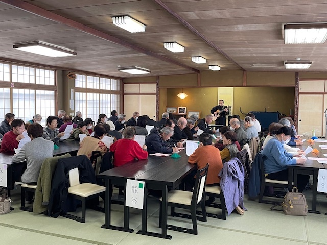 坂井市から来られた僧侶の方のお話や、歌を聞かれ